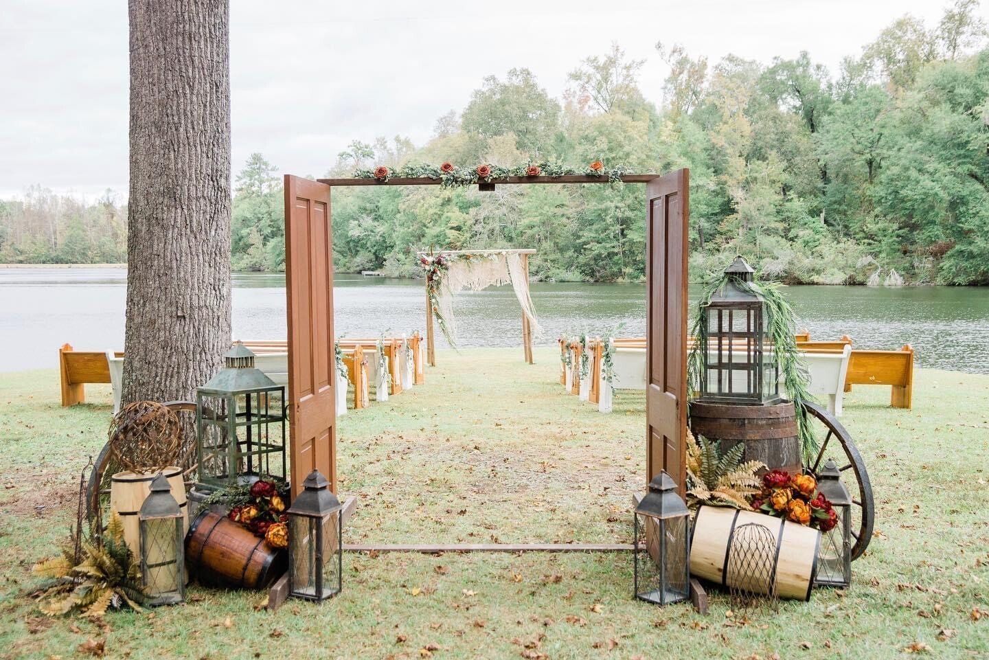 The Lake Front has been a favorite site for ceremonies here at Padgett's Farm, and when you see it there is no wonder why. It truly is a picturesque site with the grassy point that extends out to the beautiful clear water and all framed by majestic trees along the water's edge.